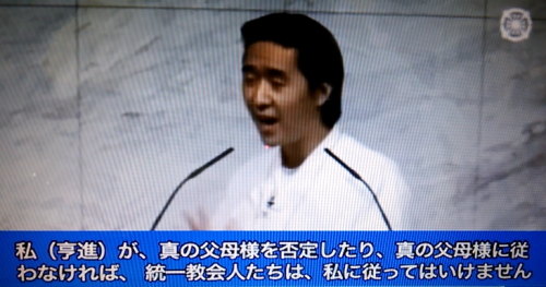 「顕進兄さんが・・・私(亨進)が、真の父母様を否定したり、真の父母様に従わなければ、統一教会人たちは、従ってはいけません。」